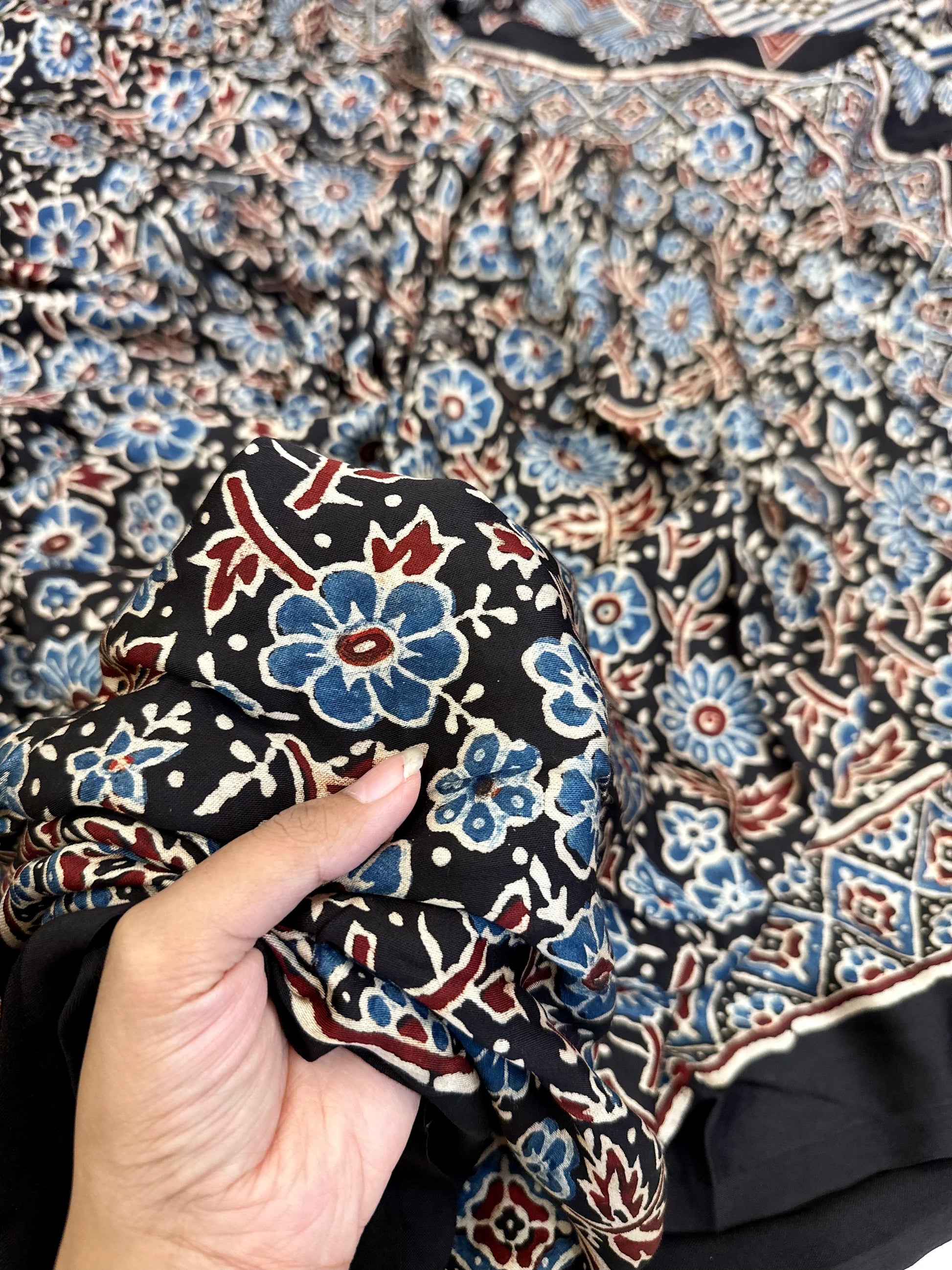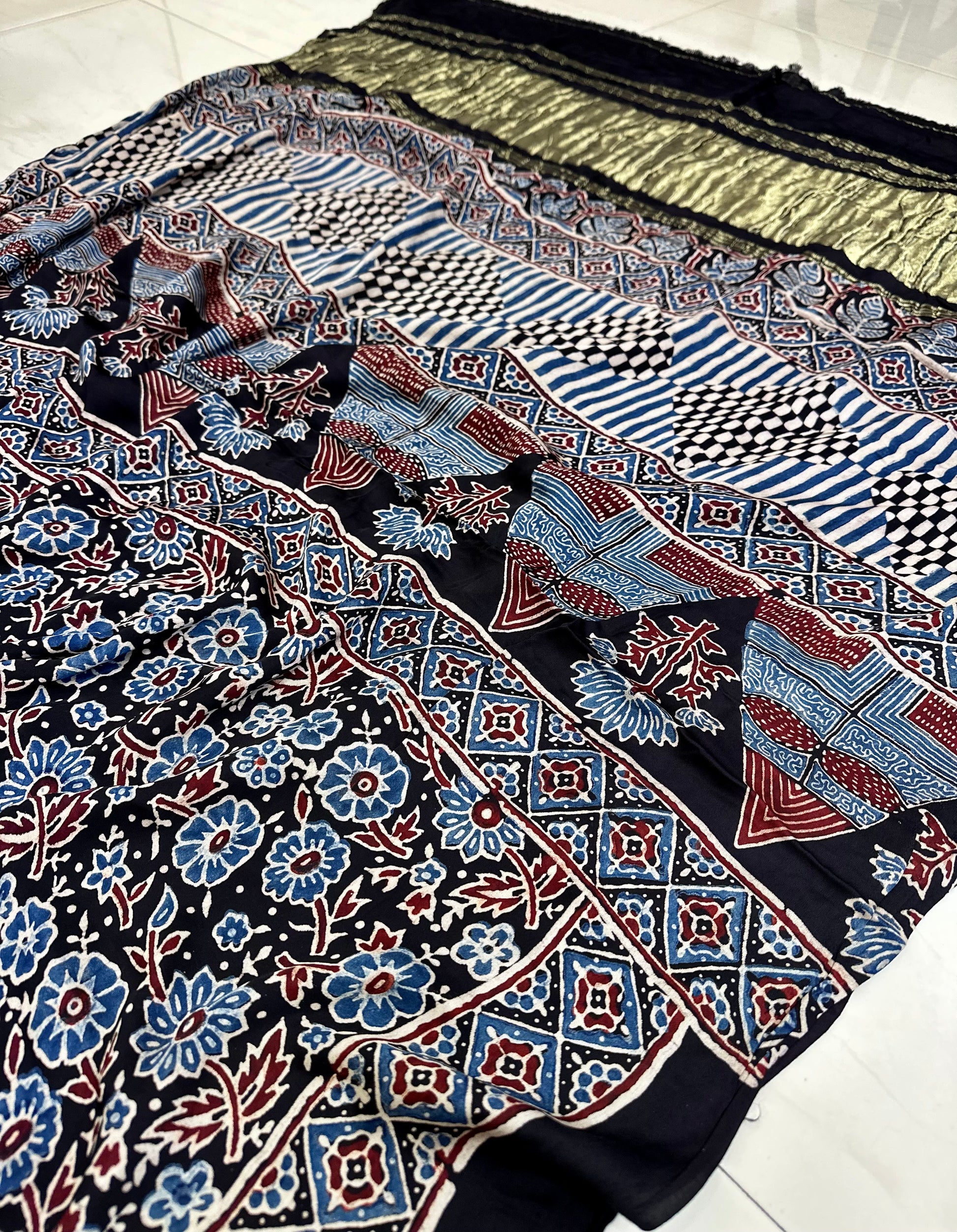 - Handblocked Ajrakh: Vegetable dyed