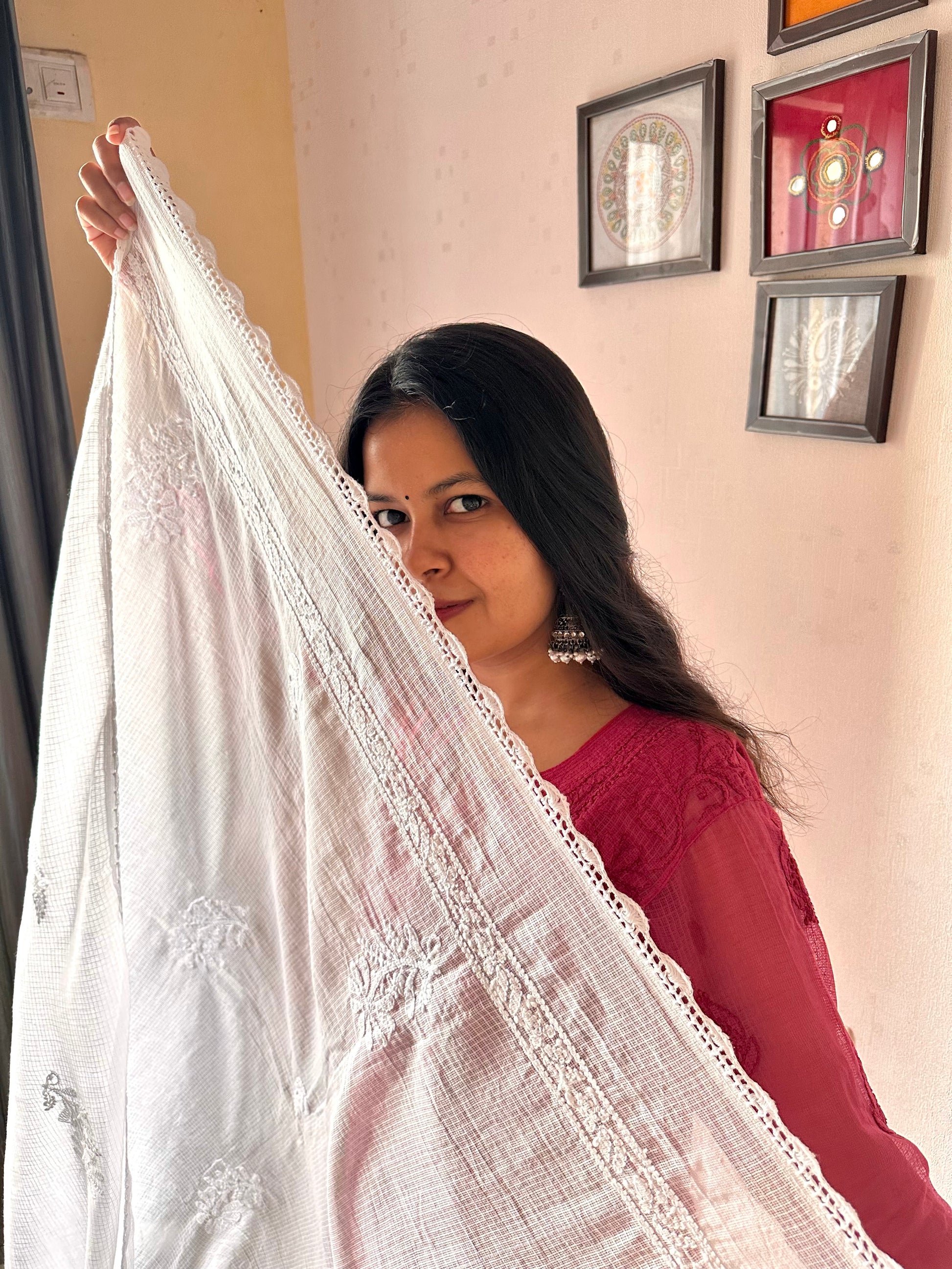 -Finely hand embroidered in bakhiya hand Chikankari work, this soft and flowy Duppata is a heart stealer. ❤