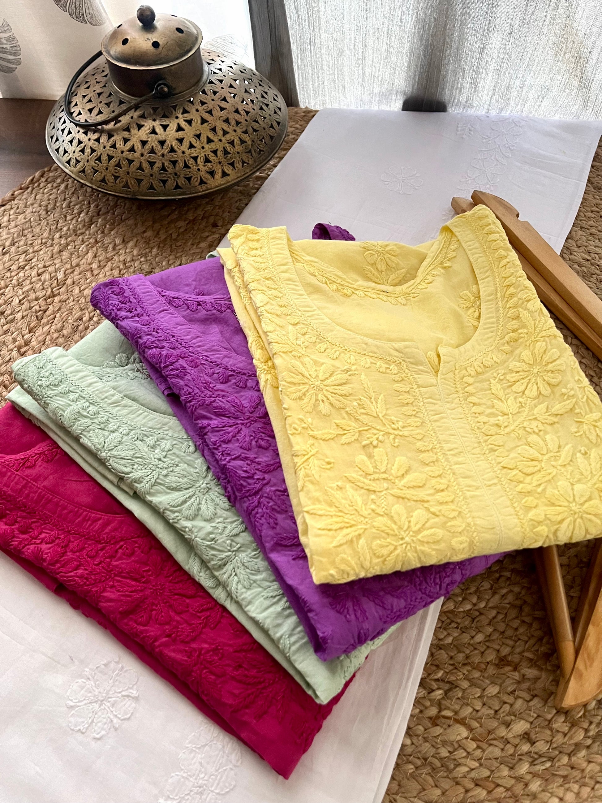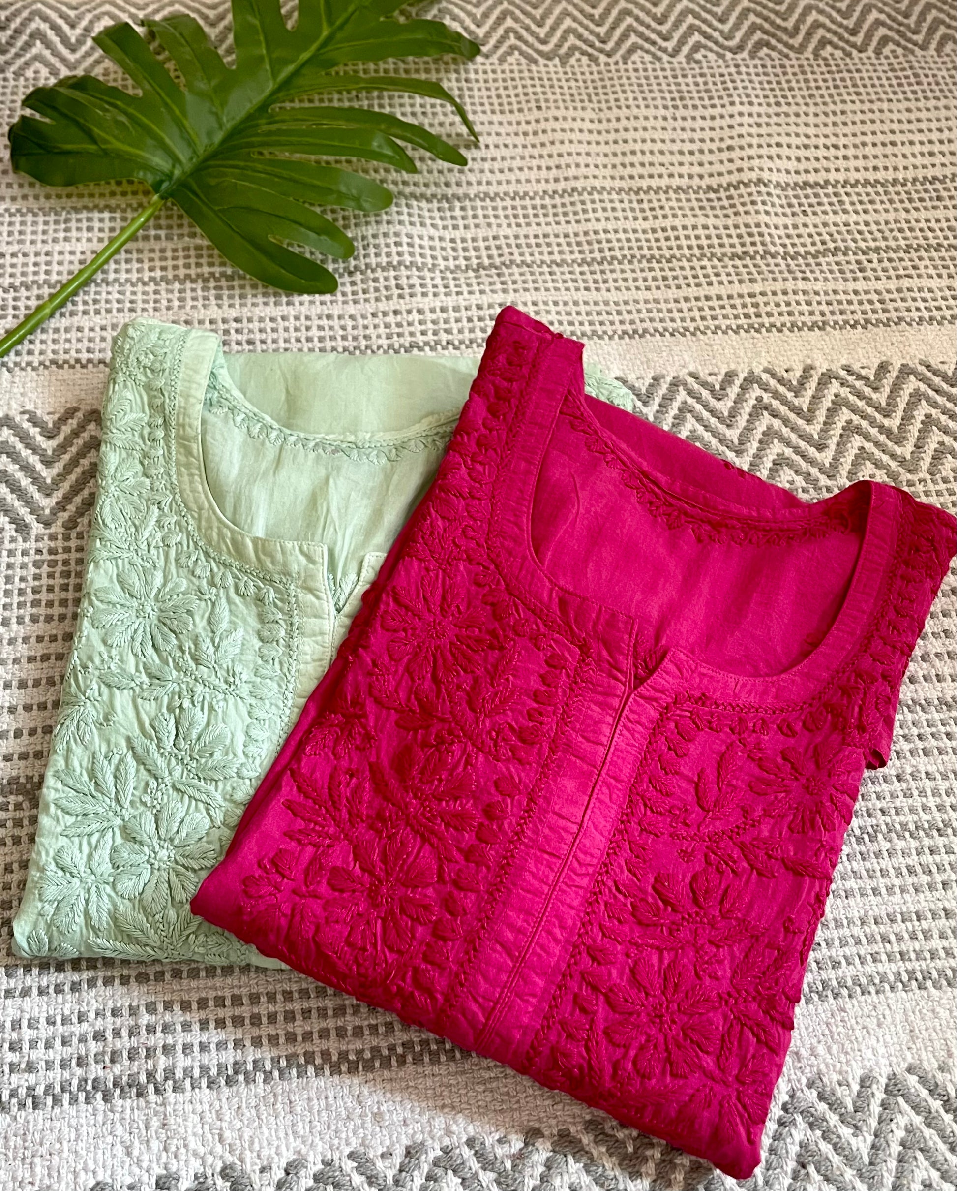 Wash Care: Handwash the garments with mild shampoo or handwash, air dry them and avoid sunlight to preserve color.