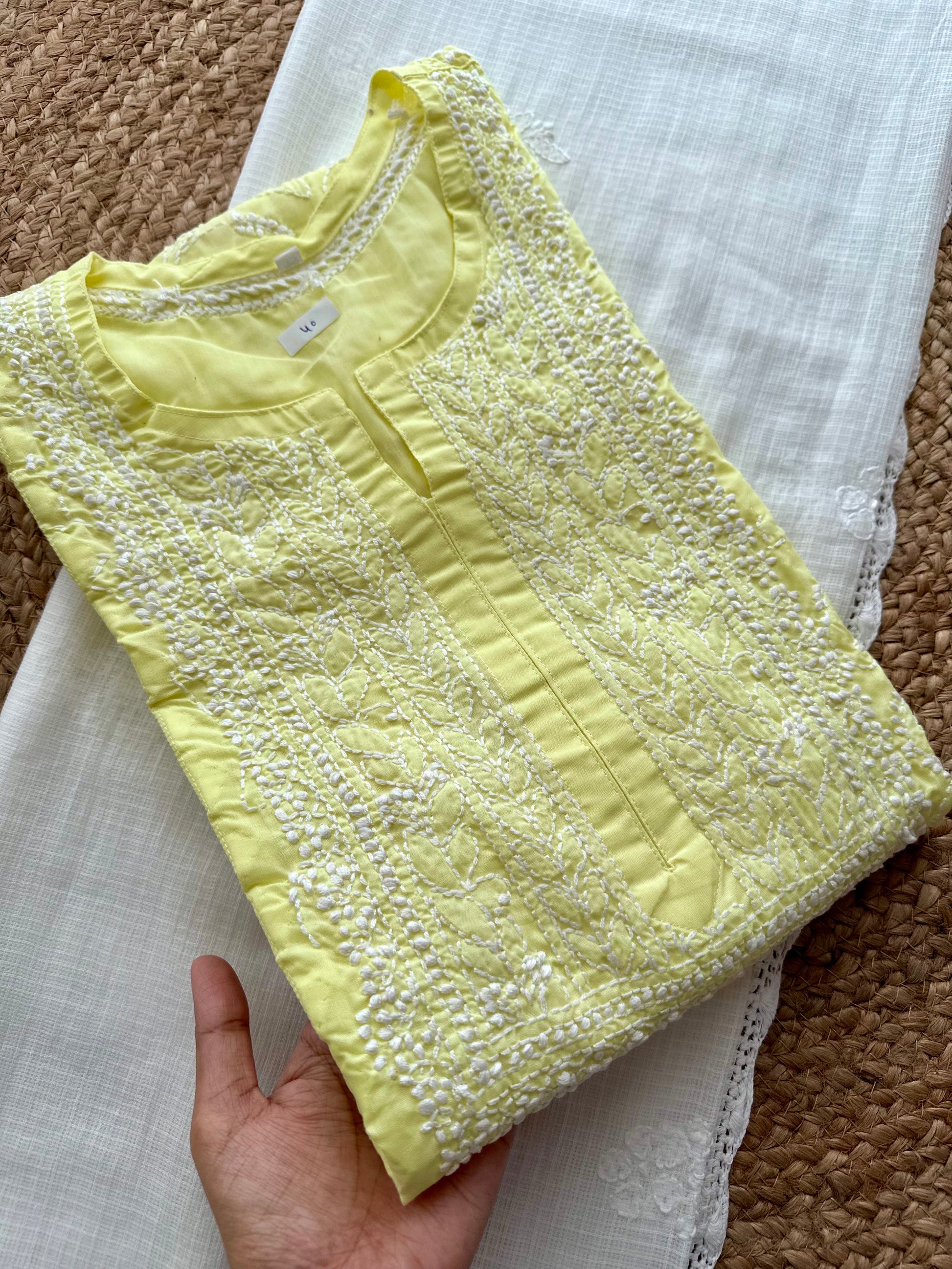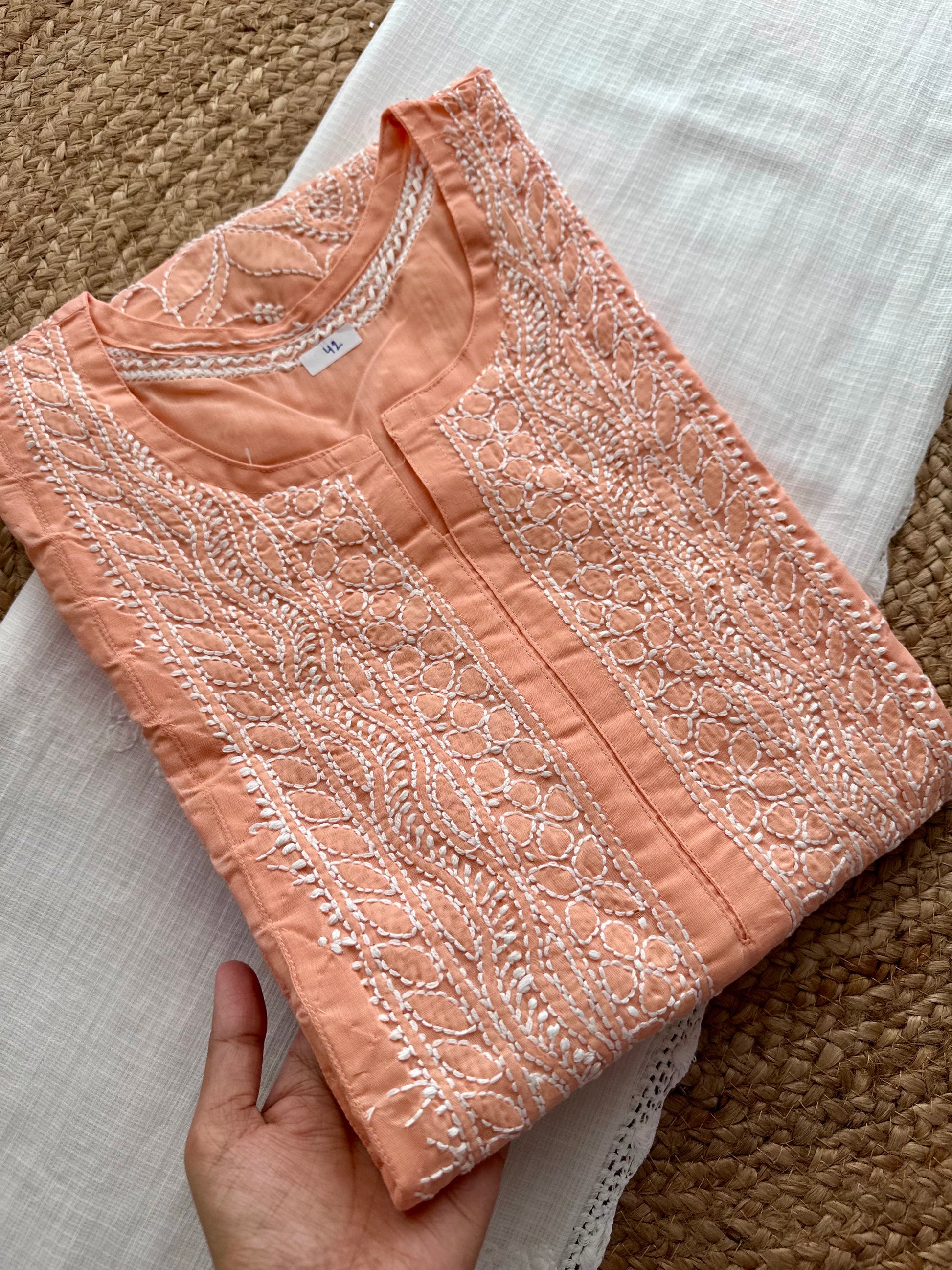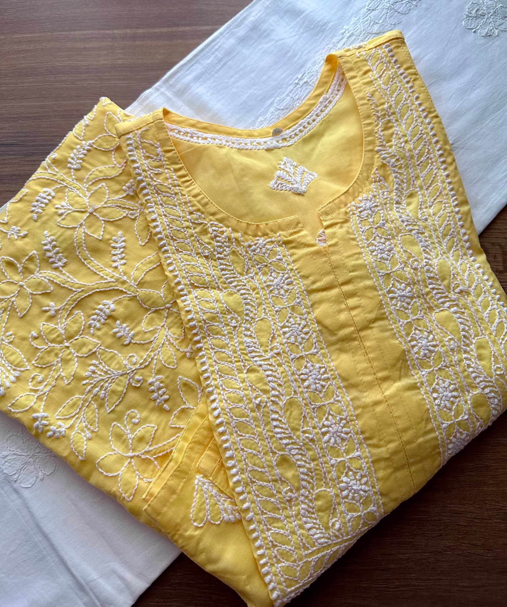 Pure cotton kurtas, With fine bakhiya work in white cotton thread work, are perfect for everyday wardrobe.