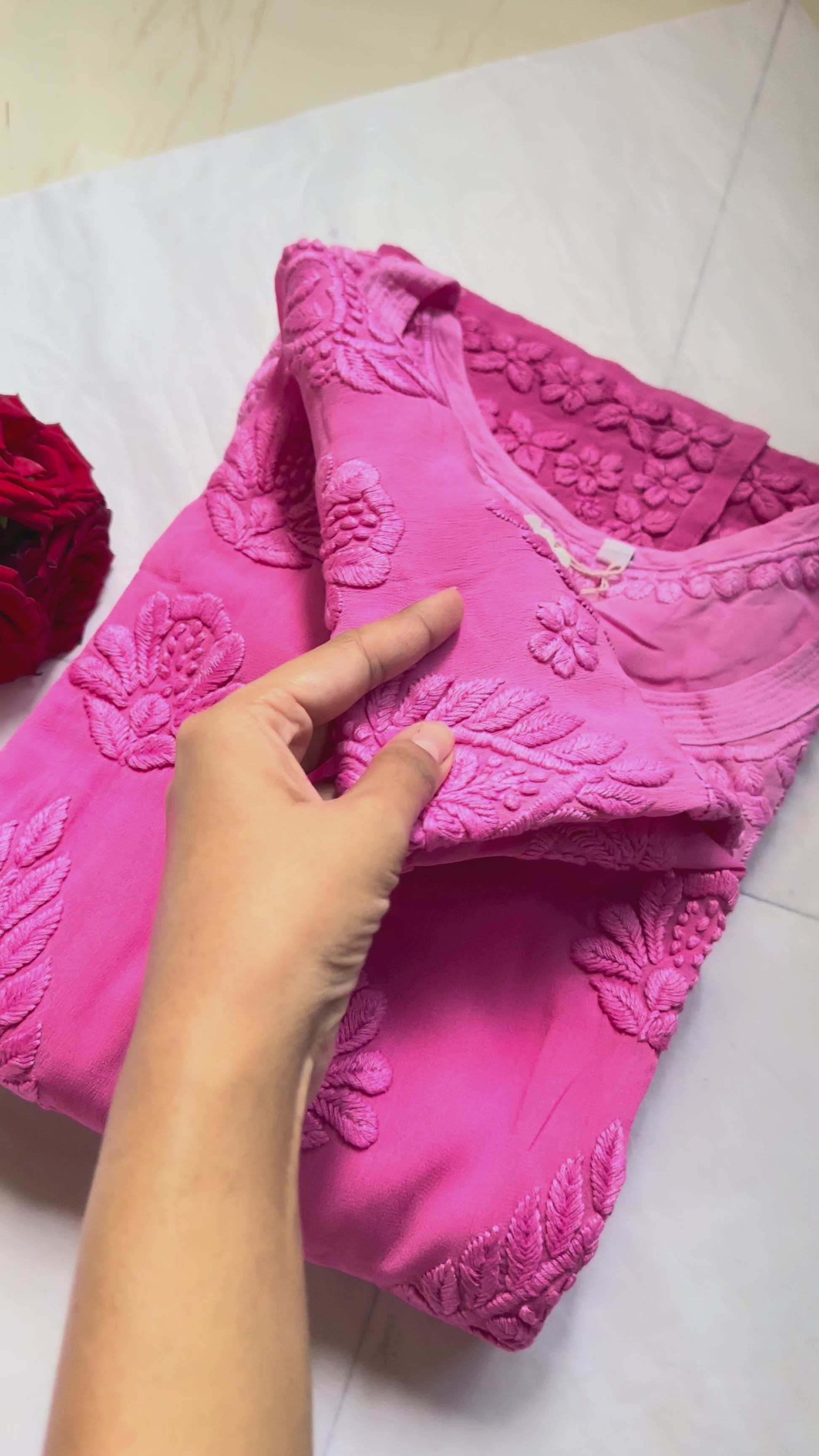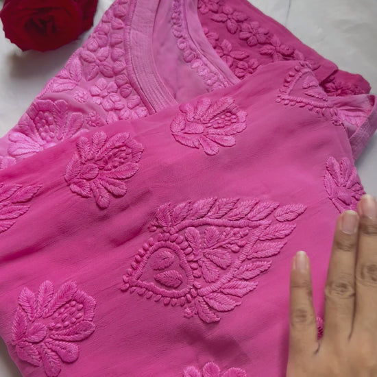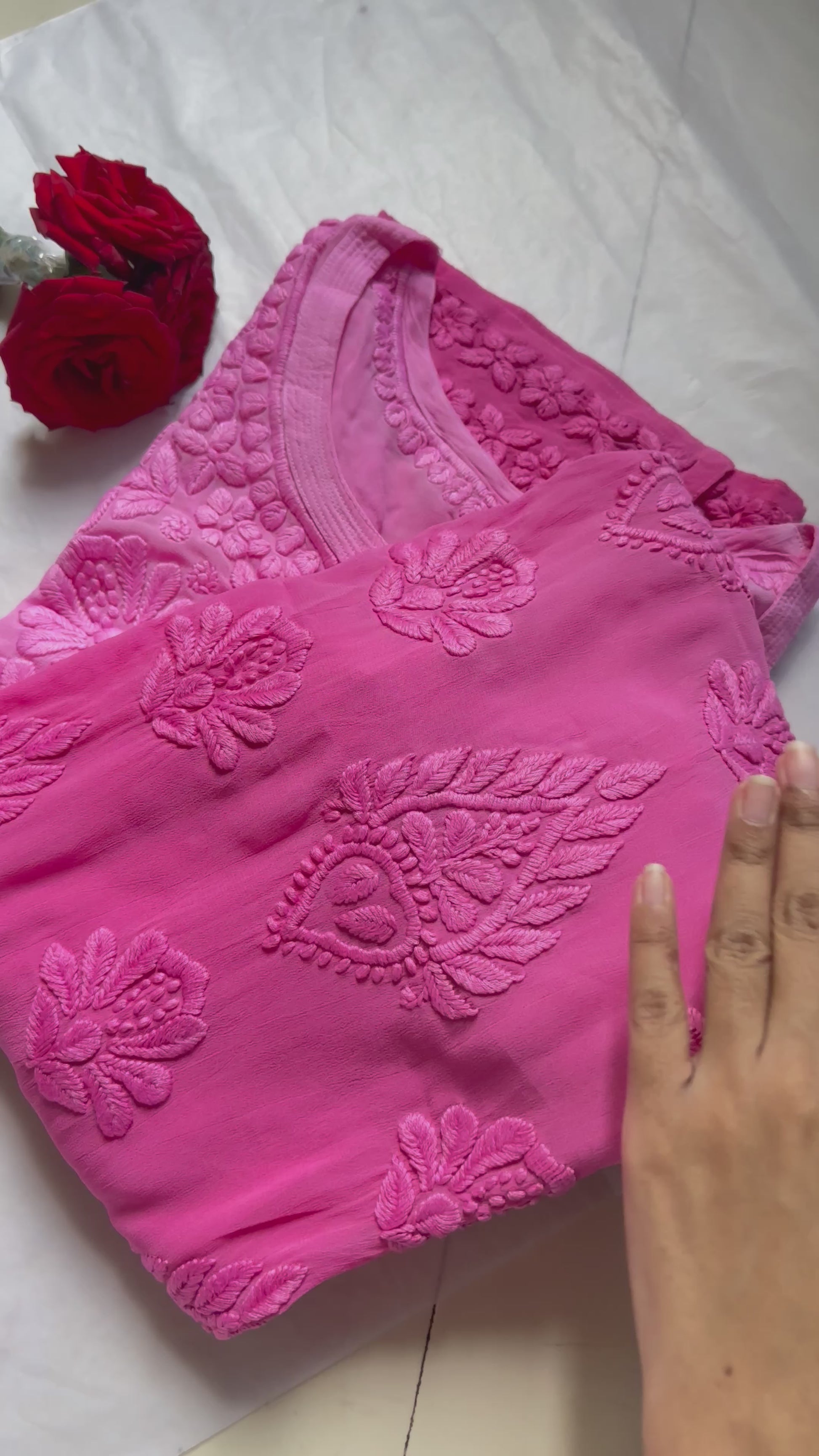Long 3D Chikankari hand embroidered kurta in Indian motifs