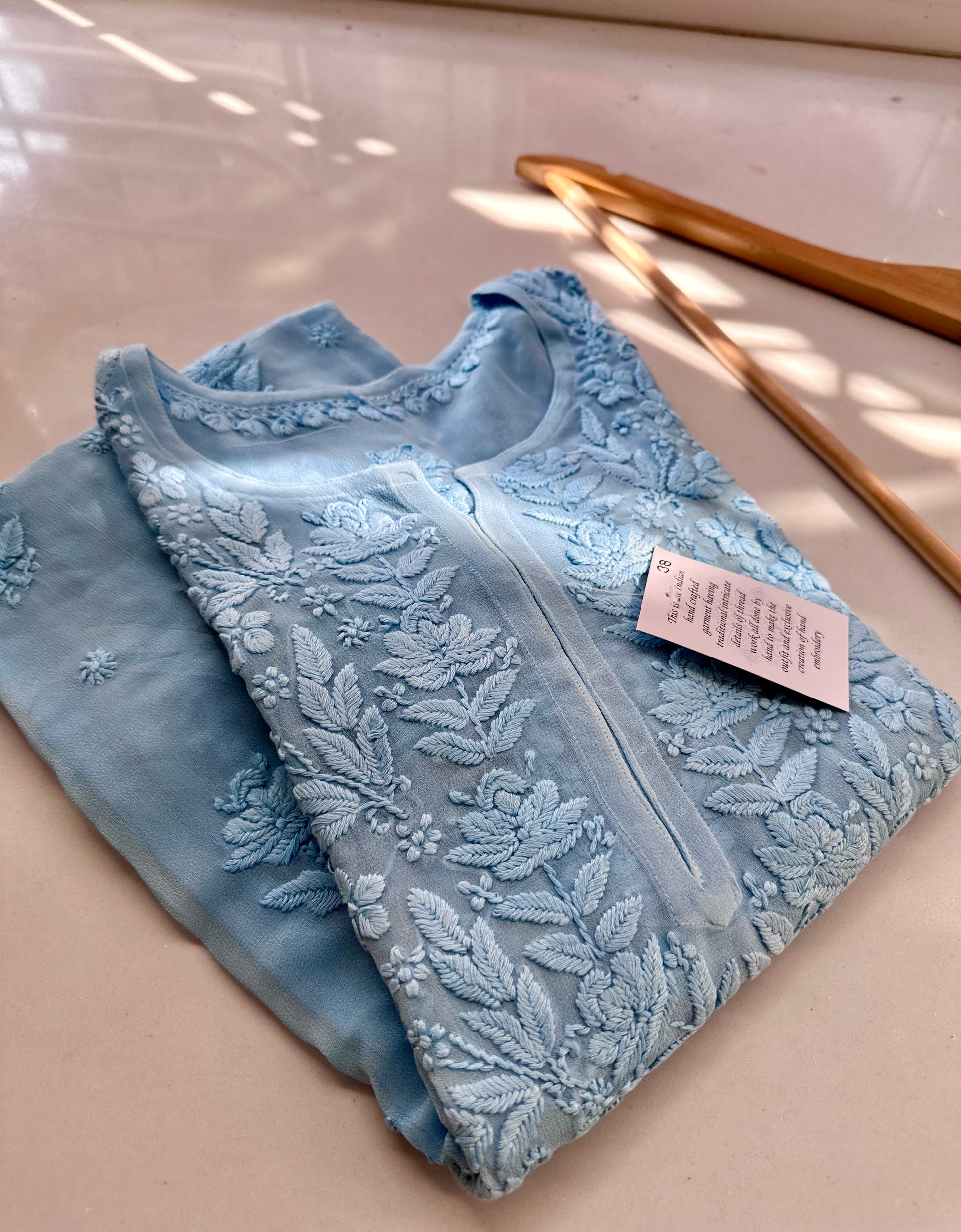 Wash Care: Handwash the garments with mild shampoo or handwash, air dry them and avoid sunlight to preserve color.