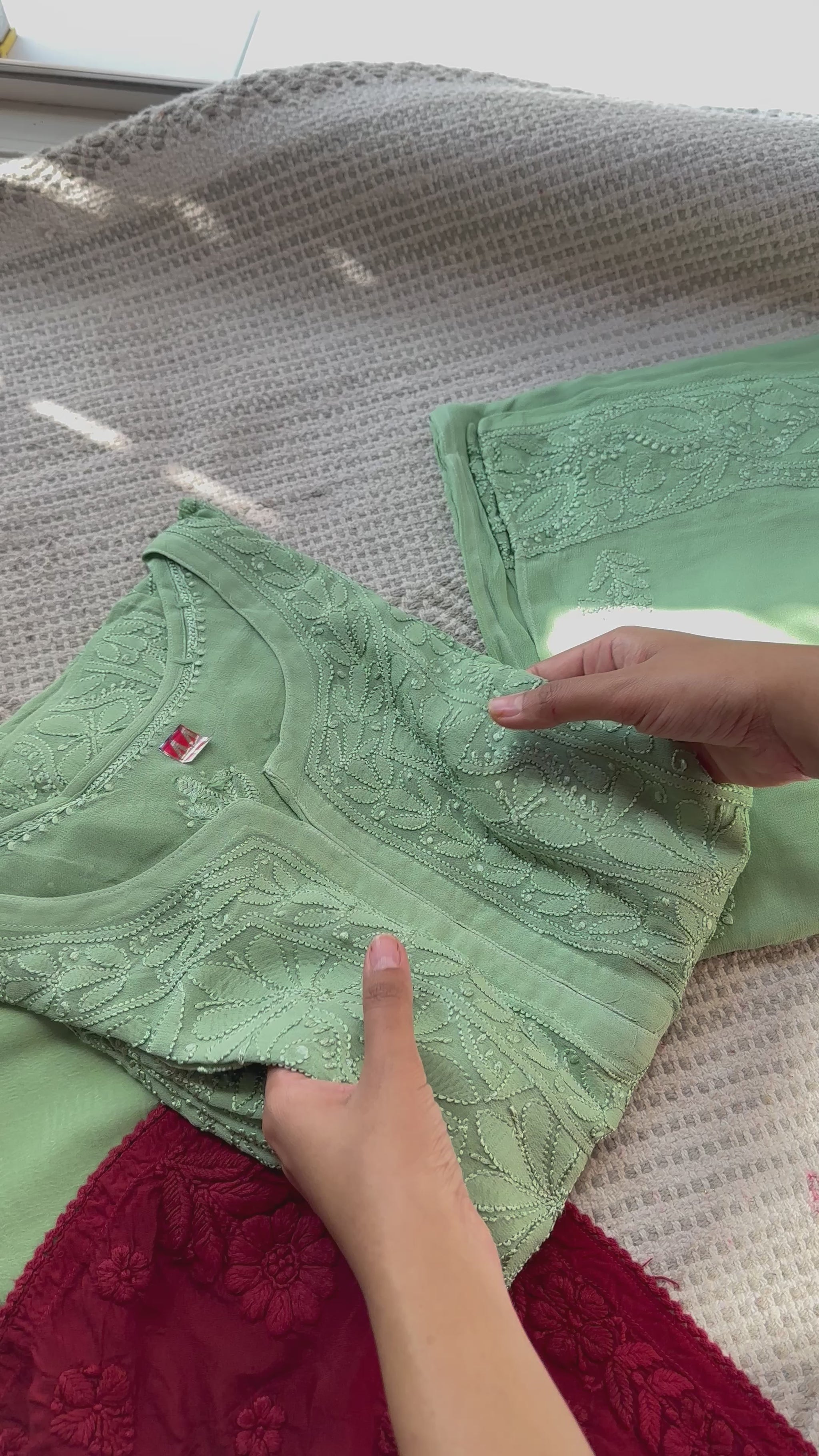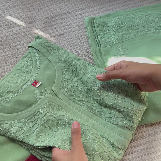 Sage green Pure Handwork Georgette Chikankari Suit Set