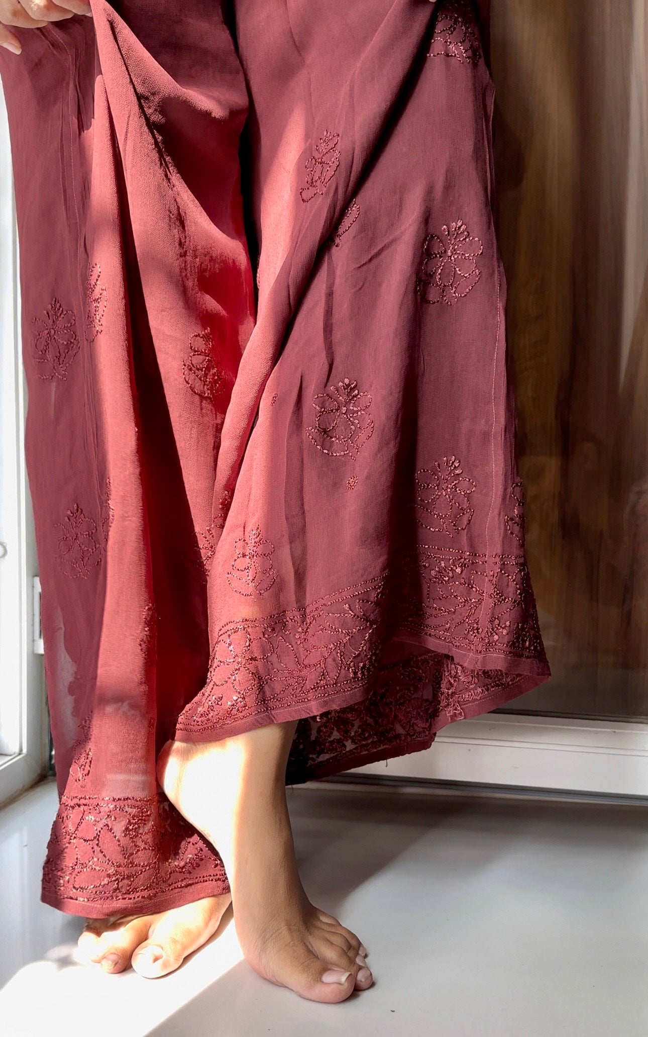 These are pure georgette kurta sets that include kurta, bottom and a dupatta. A mul non transparent inner comes complementary.